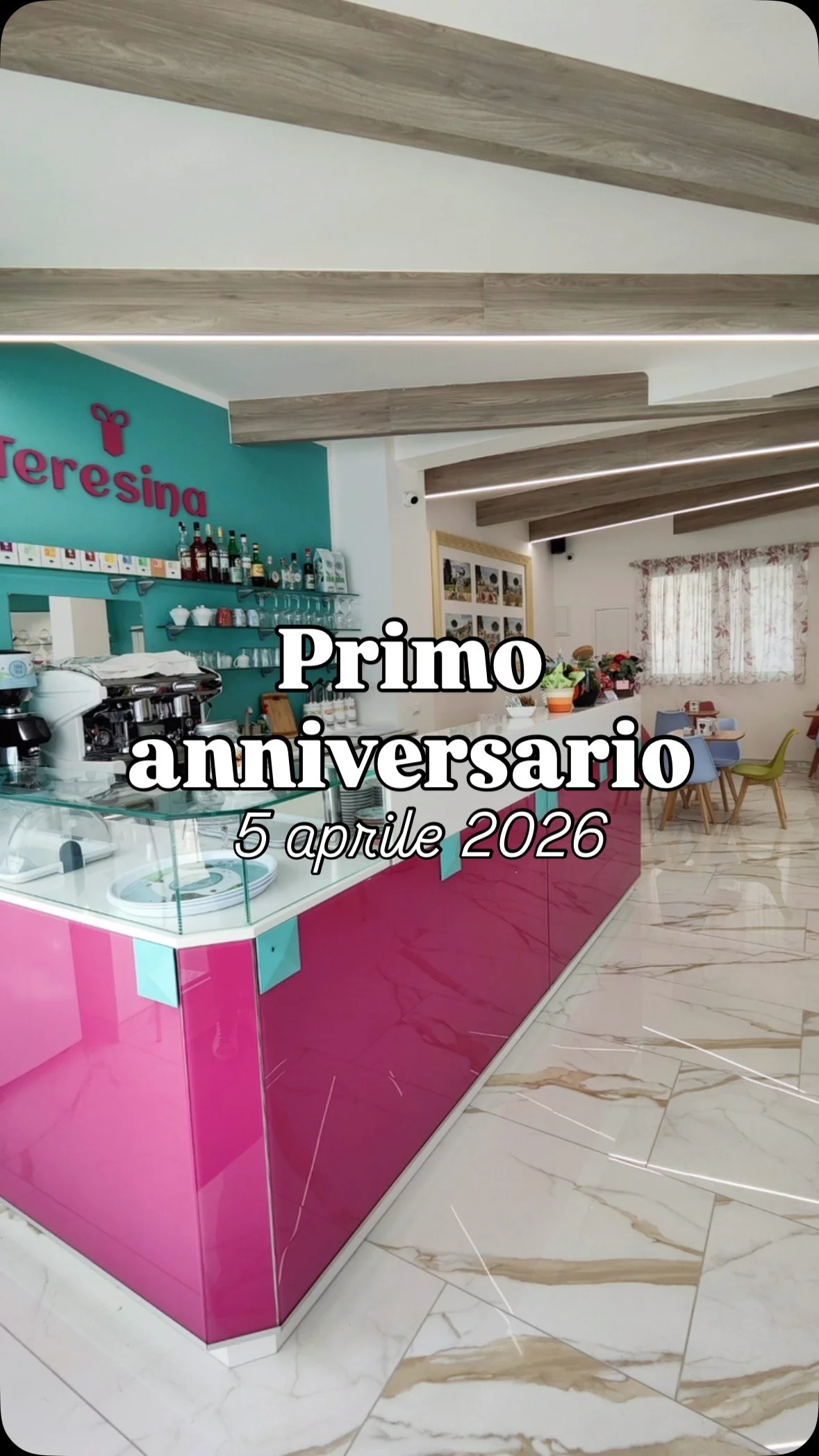 Mi chiamo Gloria, ho 30 anni e sono mamma di due bambini. La Caffetteria e Confetteria Teresina nasce dal desiderio di creare un luogo di condivisione, elegante e accogliente, dove ogni momento possa trasformarsi in un ricordo speciale.